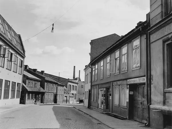 gateløp, bygårder, trehusbebyggelse, Emil Moestue papirindustri og trykkeri, fabrikkbygning