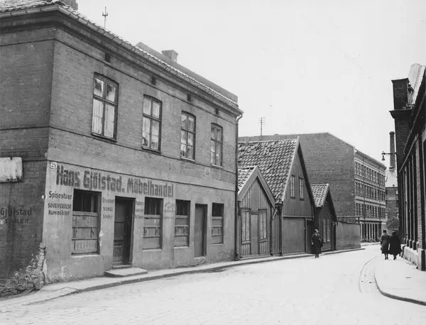 gateløp, bygårder, Hans Gjølstad møbelhandel, trehusbebyggelse, kvinner