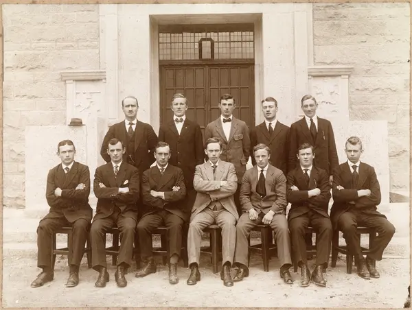 Fremste rekke: Johanson (d. 01.10 1917), Sandvold, Sivertsen, Diesen, Synnestvedt, Strøm, Frøyland.