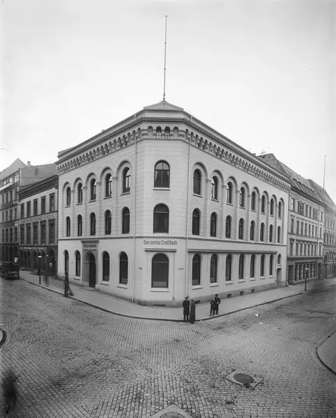 gatekryss, forretningsgårder, hjørnegård, Den norske Creditbank, mennesker, brostein