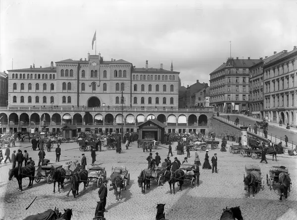 torg, mennesker, hester, kjerrer, basarer, politistasjon, bygårder