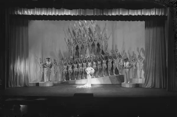 Lalla Carlsen med Herberth, Sissener og Chat Noirs ballett i forestillingen "Tenk på noe annet".
