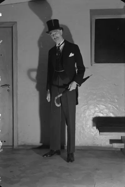 Leif Juster bak scenen i forbindelse med forestillingen "Orfeus i undergrunnen".