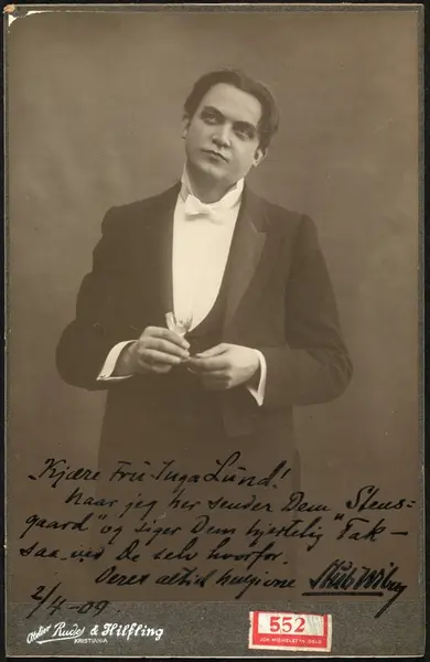 Påskrift: " Kjære Fru Inga Lund! Naar jeg her sender Dem "Stensgaard" og siger Dem hjertelig Tak - saa ved De selv hvorfor. Deres altid hengivne Stub Wiberg. 2/4 -09."