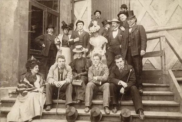 Harald Otto i midten bakerst. Harald Stormoen til venstre for ham og Elsa Krohn (Dybwad) rett foran ham. Til høyre for henne Hans Aanrud. Sittende i midten foran Hilda Fredriksen. Sittende helt til høyre Sigurd Asmundsen.