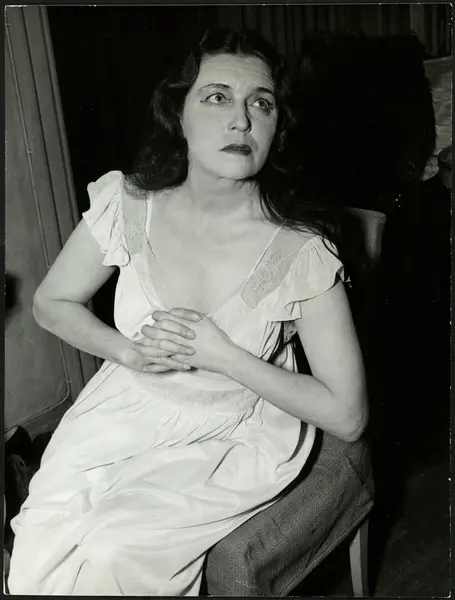 portrett, kvinne, skuespillerinne, rollebilde, monologen "Din stemme" fra Nationaltheatret på gjestespill i Stockholms Konserthus, sittende halvfigur