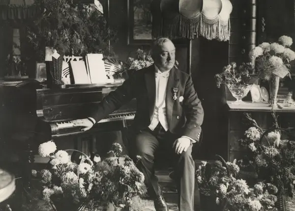 portrett, mann, Centralteatrets kapellmester, 50-årsdag, piano, blomsterbuketter