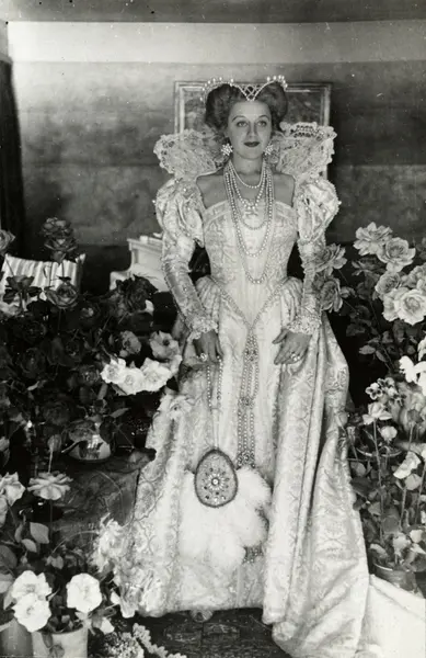 portrett, kvinne, skuespillerinne, rollebilde, tittelrollen i "Maria Stuart i Skottland" av Bjørnstjerne Bjørnson på Nationaltheatret, stående helfigur, kostyme