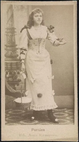 Anna Rasmussen ble senere gift Erichsen. Mignonportrett (6x3 cm) utgitt som reklame for Langaards sigaretter.