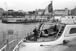 Tollbåten Snøgg. Pipe med løve. Desember... Fotograf Dagbladet – 1950