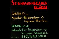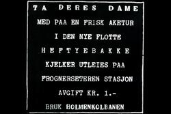 Ta trikken opp til skibakkene. En reklam... Fotograf Sverdrup Dahl –
