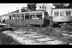 Ekebergbanen trikk vogn utenfor Holtet s... Fotograf Ukjent –