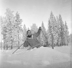 Kvinne med ski i snøen. Oslo, januar, 19... Fotograf Dagbladet – 1959