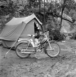 skog, moped, campingtelt, gutter Fotograf Atelier Rude – 1960