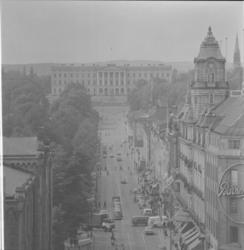Karl Johans gate mot Universitetet og Sl... Fotograf Ukjent –