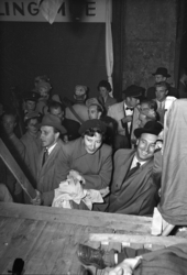 Folkets Hus, interiør, storsalen, møte i... Fotograf Ørnelund, Leif Krohn – 1951