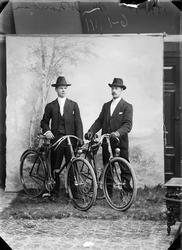 På sykkeltur i fotografens atelier. Fotograf L. Szacinski – 1905