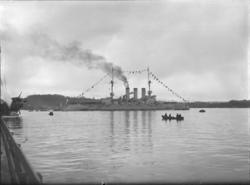 Tysk slagskip på fjorden. Fotograf Bruun, Hans Rener – 1905