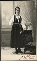 portrett, kvinne, bunad, sittende helfig... Fotograf L. Szacinski – 1905 – 1910