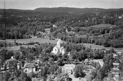 Ullern kirke m / Bestum skole i forgr Fotograf Widerøes Flyveselskap / Edmond Jaquet – 1963