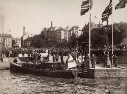 brygge, sjalupp, kongen mottar det briti... Fotograf Væring, Olaf Martin Peder – 1907