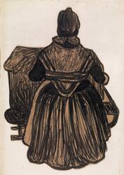 tømmerstue, interiør, staffelier, kvinne... Fotograf ukjent person – 1899