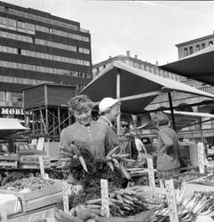 Torgboder med grønnsaker, Youngstorget, ... Fotograf Dagbladet – 1956