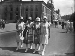 Ved rytterstatuen på Slottsplassen. Fotograf Langberg, Esther – 1930 – 1940