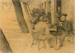 Fortaus-servering på Engebrets Kafé [teg... Kunstner Krohg, Christian – 1880