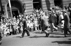 Universitetsplassen klargjort til kongen... Fotograf Helland, Odd – 1945