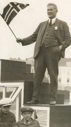 Gunnar Knudsen taler. Fotograf Holmsen, Johannes Markus – 1920