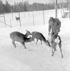 Foring av hjort på Ekeberg, Oslo. Fotog... Fotograf Dagbladet – 1960