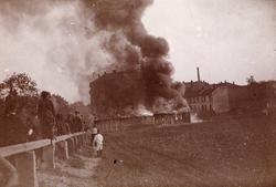 vedskur, brann, røykutvikling, tilskuere... Fotograf Bull, Jørgen – 1902