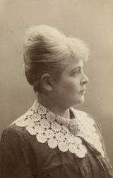 portrett, kvinne, vignettert brystbilde Fotograf Julin, Hilda Marie – 1890