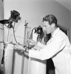 Elektroterapi. Fysioterapeut Ragnar Nyhu... Fotograf Arbeiderbladet – 1962
