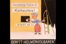 Ta trikken opp til skibakkene. En reklam... Fotograf Sverdrup Dahl –