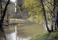 Akerselva ved Hjula Veveri. Fotograf Ørsted, Henrik – 1980