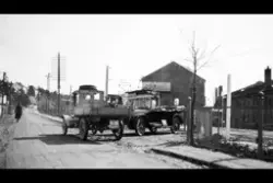 parkeringsplass, lastebiler, forretnings... Fotograf Væring, Ragnvald – 1938
