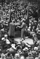 Oscar Torp taler under et protestmøte på... Fotograf Arbeiderbladet – 1931