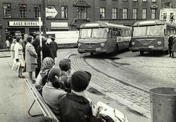 Fra busstreiken i Oslo - parkerte busser... Fotograf Ukjent – 1956