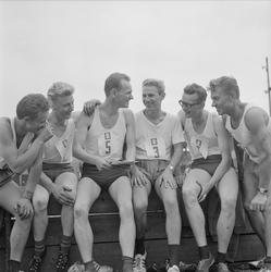 telt, interiør, menn, kabelleggere fra S... Fotograf Ørnelund, Leif Krohn – 1962