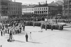Minnesmarkering ved Oslo domkirke under ... Fotograf Johan Hove Mo eller Johannes Reidar Mo – 1945