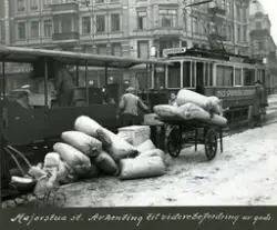 Oslo Sporveiers godsvogn nr. 56 med tilh... Fotograf Ukjent – 1940