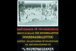 Skøiteis på Øvreseter! Ta Holmenkolbanen... Fotograf Sjøwall, Gunnar Theodor –