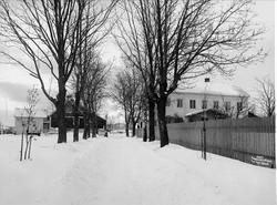 boligbebyggelse, gjerde, vei, kvinne, sn... Fotograf ukjent person – 1920 – 1930