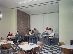 Njårdhallen, interiør, kafeteria Fotograf Ørnelund, Leif Krohn – 1960