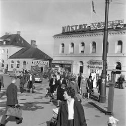 Østbanestasjonen, mennesker, biler, traf... Fotograf Ørnelund, Leif Krohn – 1960