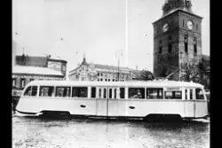 Boggi Sporvogn kjører forbi domkirken. Fotograf Wilse, Anders Beer –