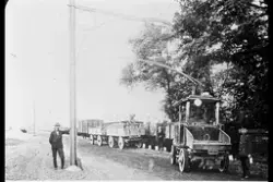 Prøvereising av sporveismast med løftetr... Fotograf Ukjent – 1931