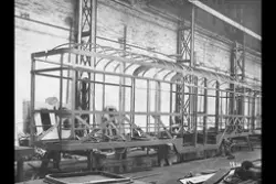 Uferdig trikk bygging i Vognhall. Fotograf Ukjent –